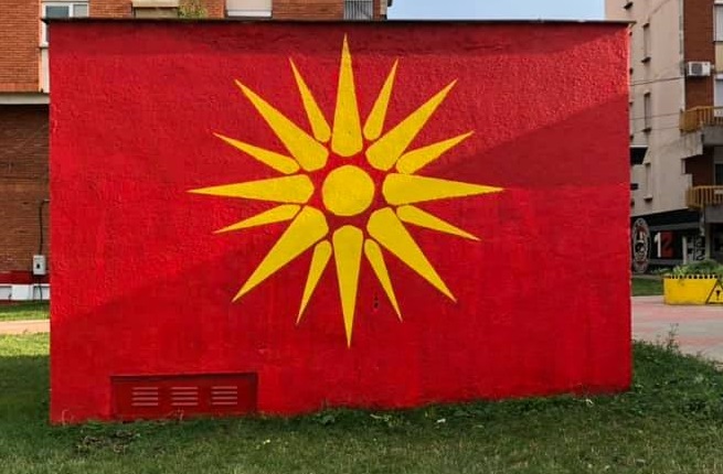 Навивачката група “Лозари Исток” од Кавадарци објави фотографија на која се гледа нацртано шеснаесеткракото сонце од Кутлеш на еден трансфроматор во градот.